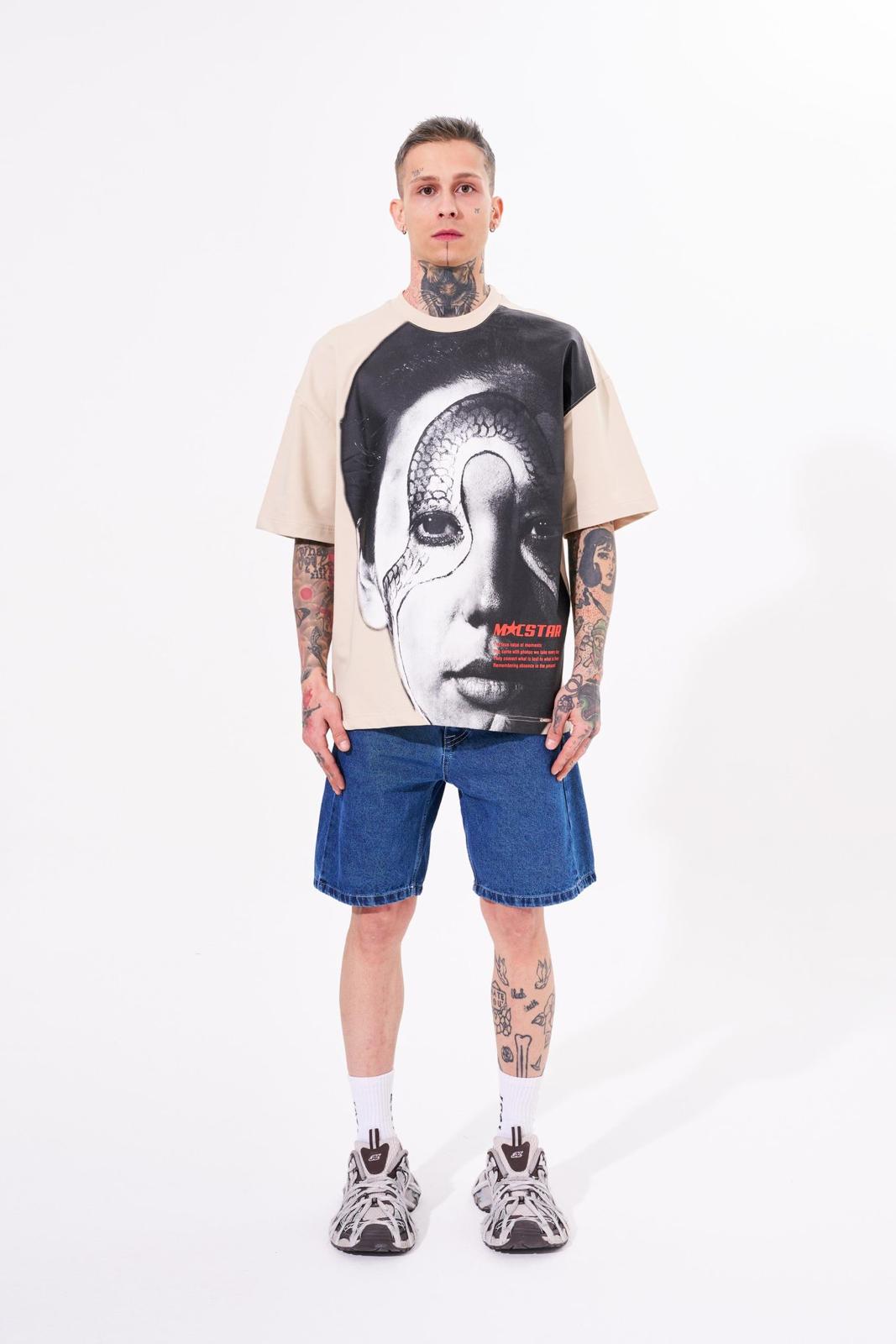 Men's Oversized Crew Neck Pullover with Large Medusa Design