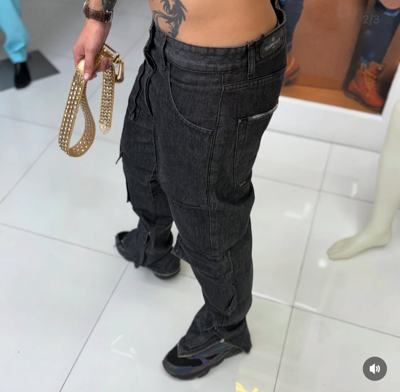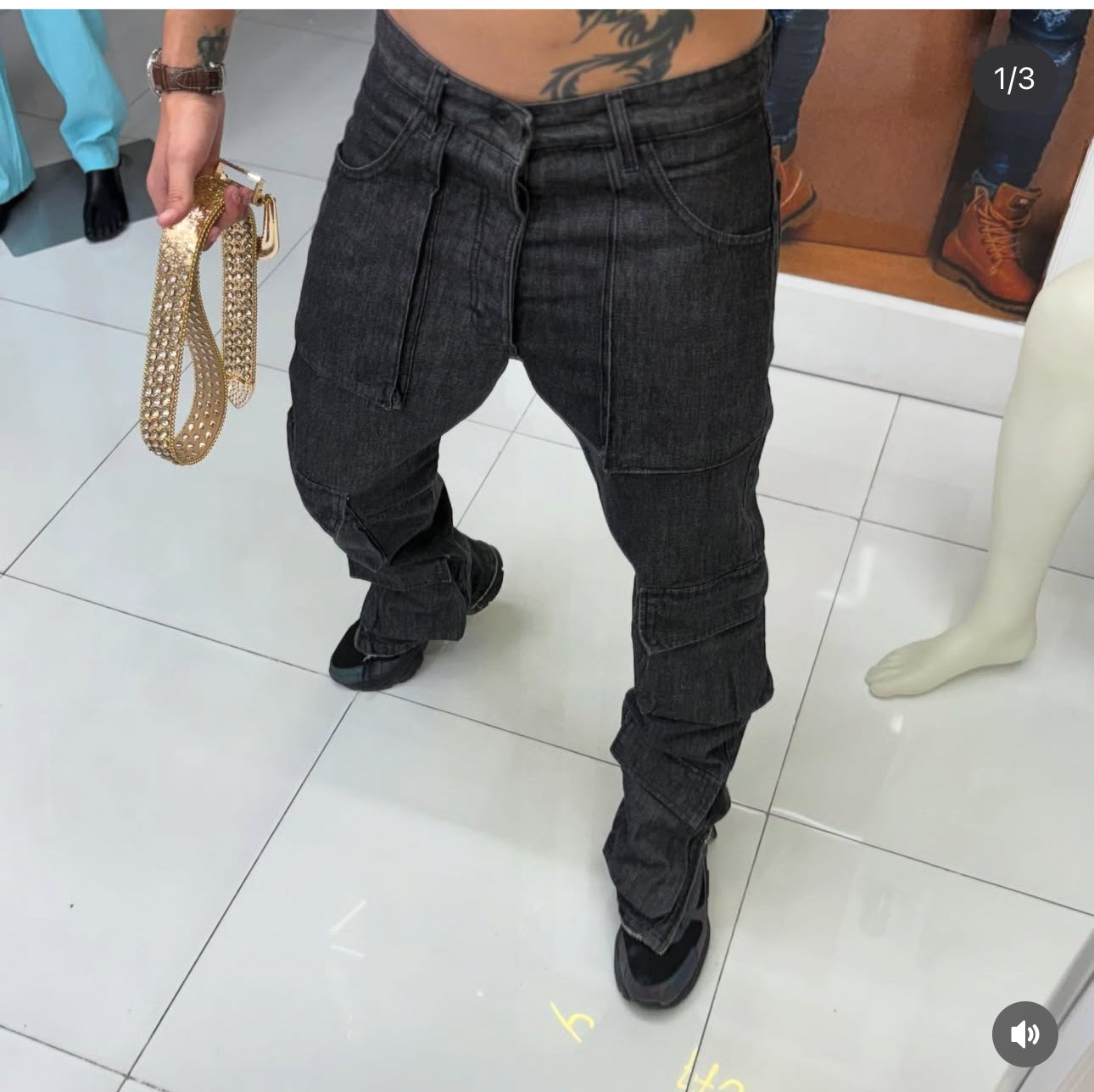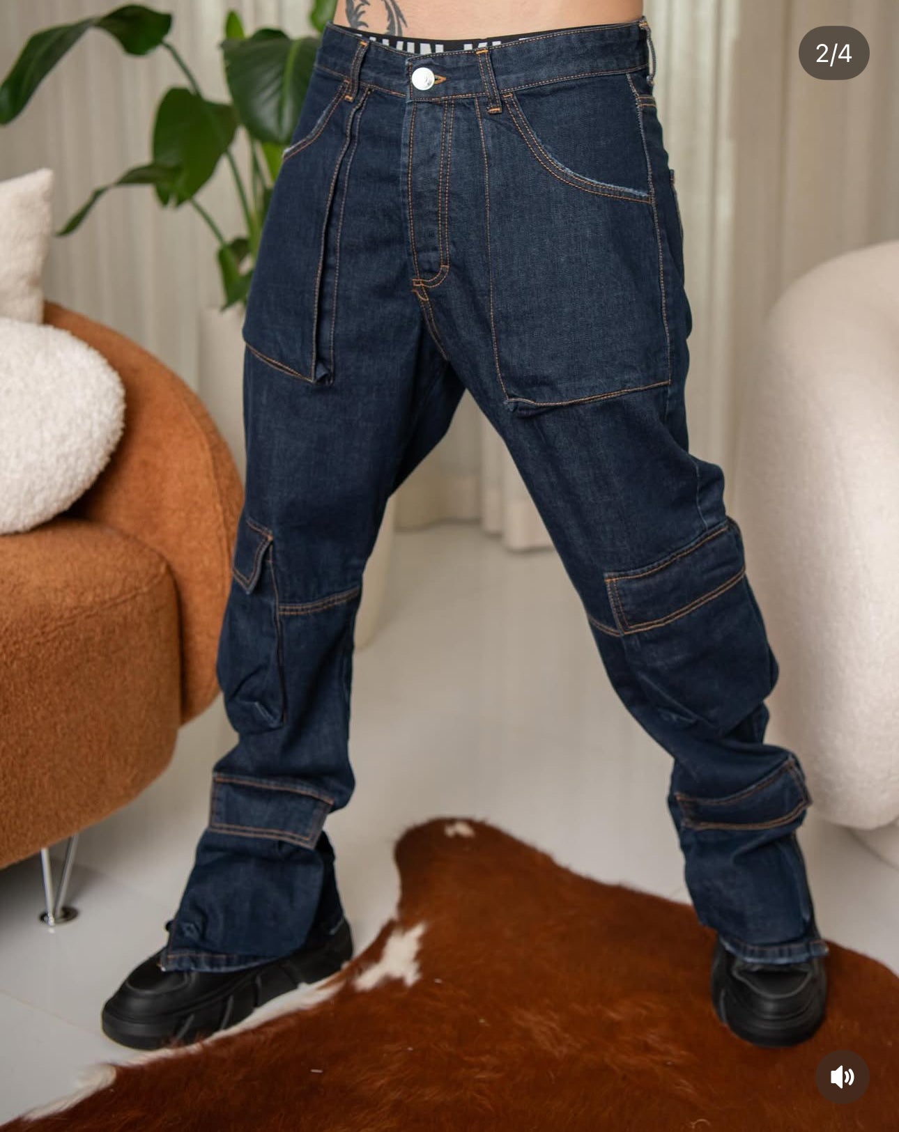 Blue Cargo Jeans with Large Pockets